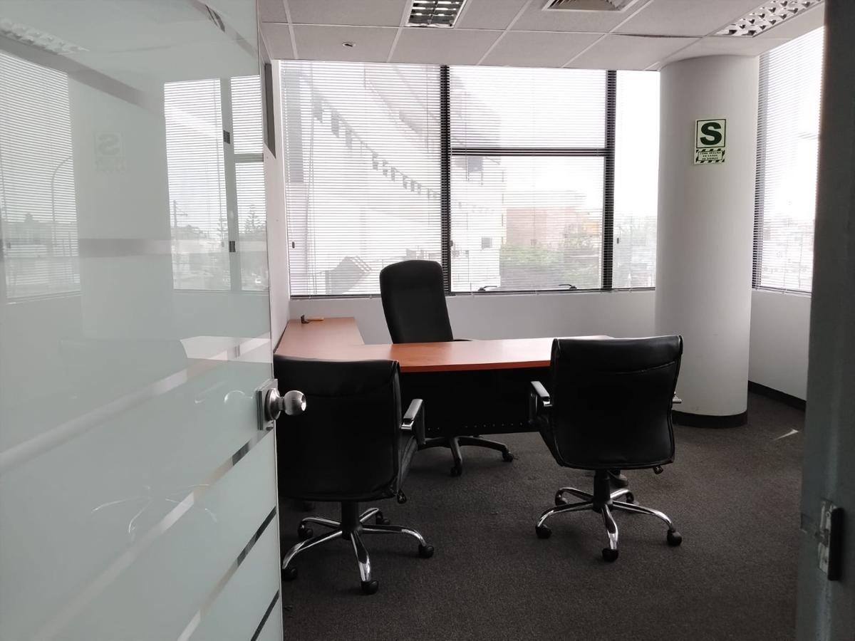Infraestructura y equipamiento: Aire acondicionado integral en toda la oficina. Cuarto de servidores (IT). 2 salas técnicas de aire acondicionado. Puerta de emergencia. Ventanas y mamparas de vidrio templado con marcos de aluminio. Persianas instaladas en todos los ambientes. 6 baños. 2 kitchenettes equipadas.