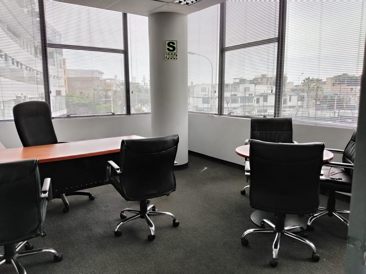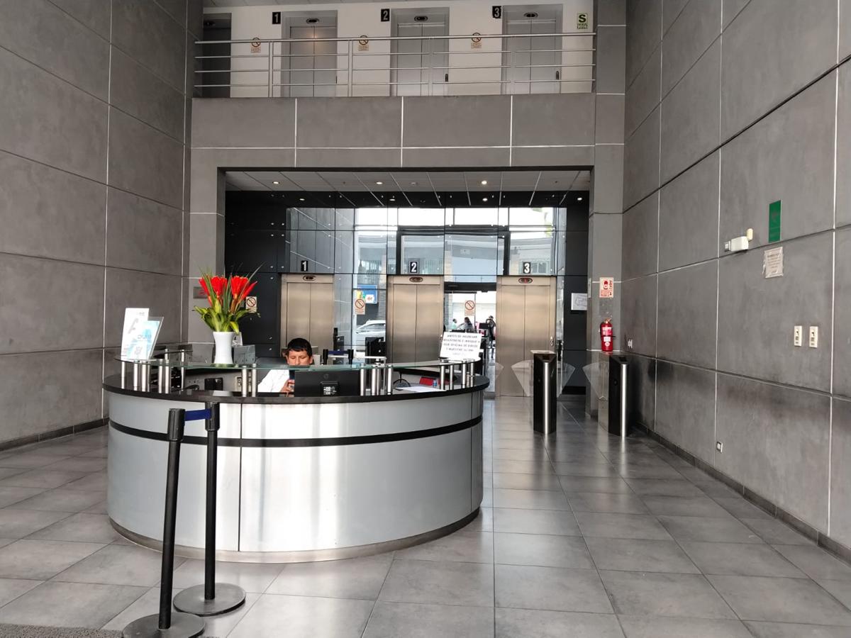 Edificio y seguridad: Edificio empresarial de 9 pisos y 5 sótanos. Recepción general. 3 ascensores + 1 ascensor de carga. Seguridad y vigilancia 24/7. Mantenimiento: S/ 2,000 aprox. (incluye agua).