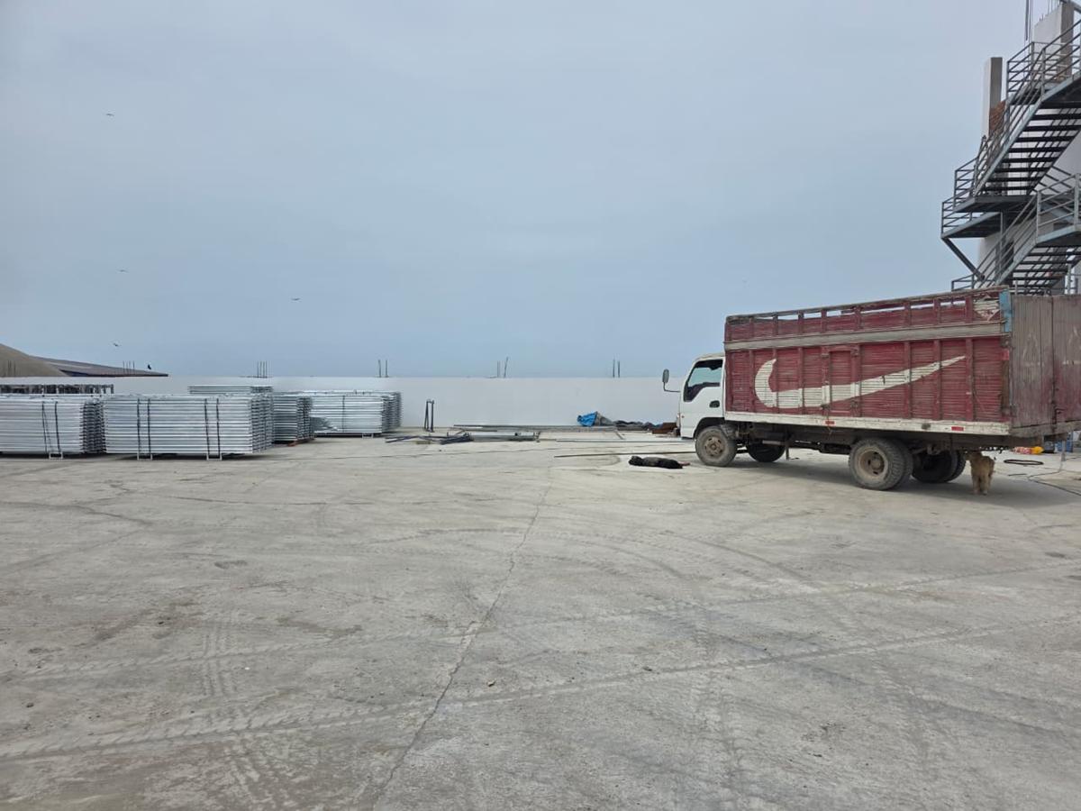 Infraestructura y condiciones del terreno: Perímetro completamente cercado con muros de concreto. Dos grandes portones de fierro para el acceso y salida de vehículos de gran tamaño y transporte pesado. El terreno al interior tiene una loza de 20 cm de espesor de concreto armado con fierro sobre un terreno afirmado con 40 cm de compactado. 450 m² de oficinas construidas. 100 m² de taller techado.